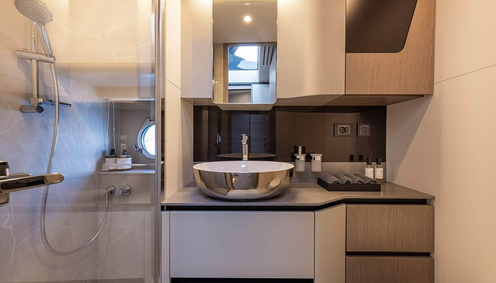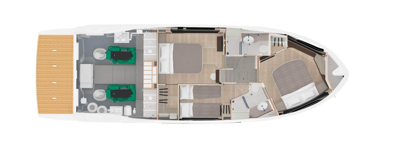Innovative and forward-looking engineering, to ensure a unique journey also below deck, where three comfortable cabins with high ceilings offer unparalleled livability for yachts of this size.