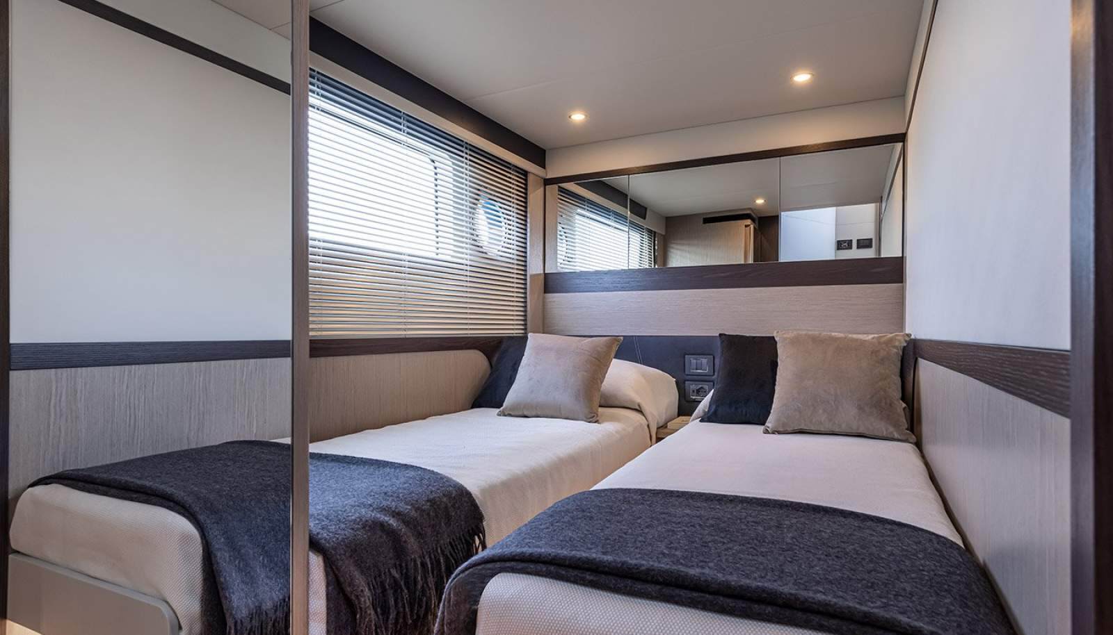 The Absolute 48 Coupe shows a strong commitment to sustainability: her roof is equipped with a set of solar panels, one of which is transparent to let in the natural light without overheating the room.