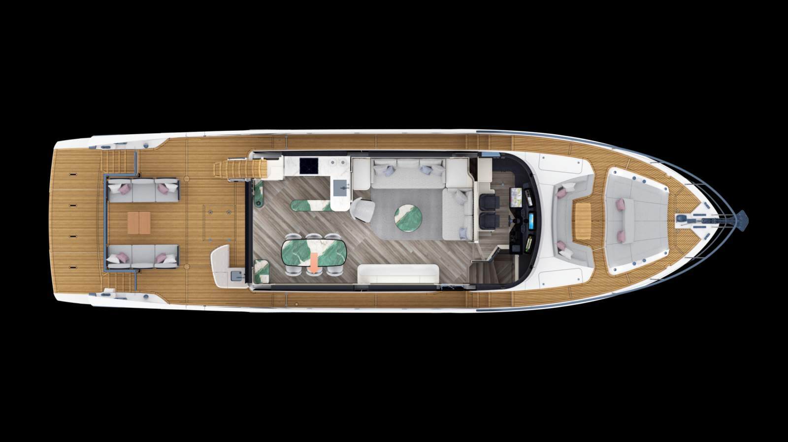 A completely revamped style element is undoubtedly the flybridge, available in two different configurations: A and B.