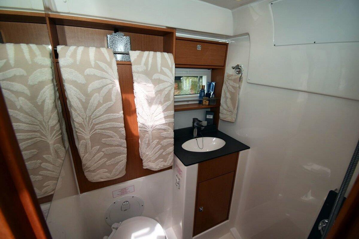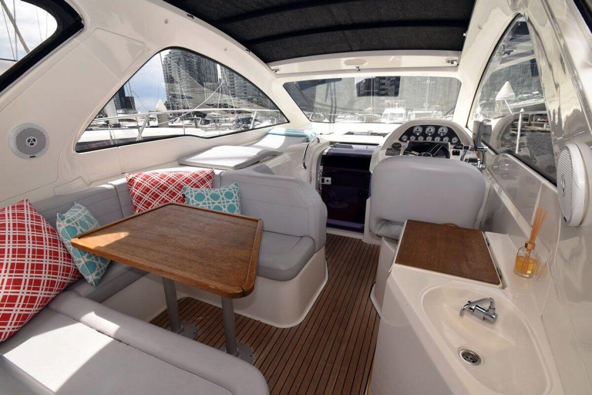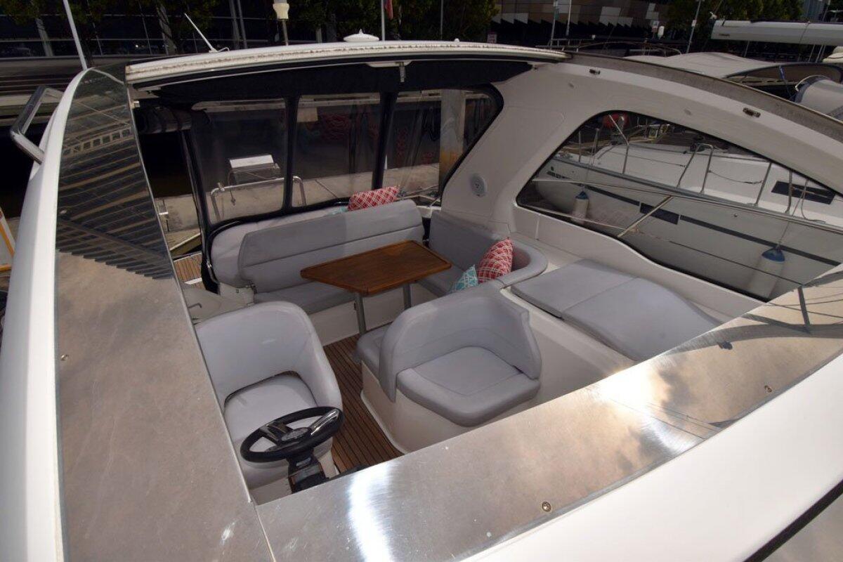 The large cockpit is perfect for entertaining and includes a Hardtop with huge Sunroof provides shelter from the weather, then opens up for the sunshine, a Wet Bar with Fridge & Sink and loads of seating.