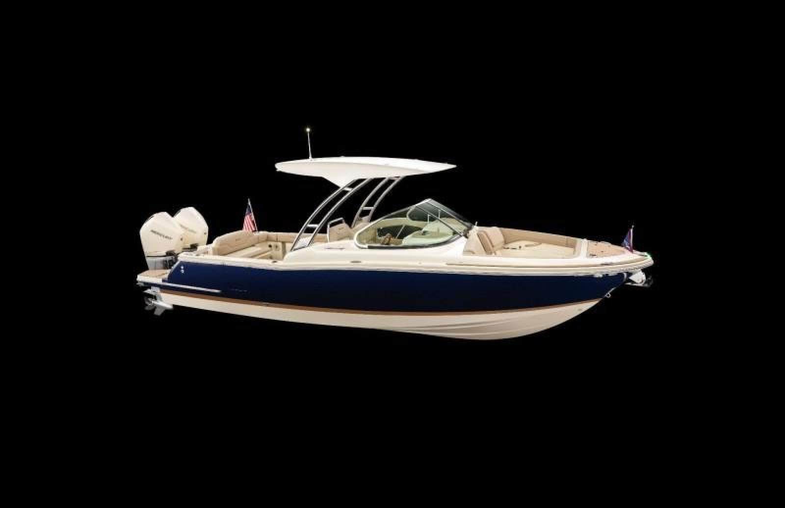 MODERN LOUNGING - The u-shaped bow seating includes forward-facing sunloungers with USB charging ports and plenty of cupholders nearby. Chris-Craft upholstery combines the finest marine-grade vinyl with high-density foam featuring antimicrobial and quick-drying properties for easy living.