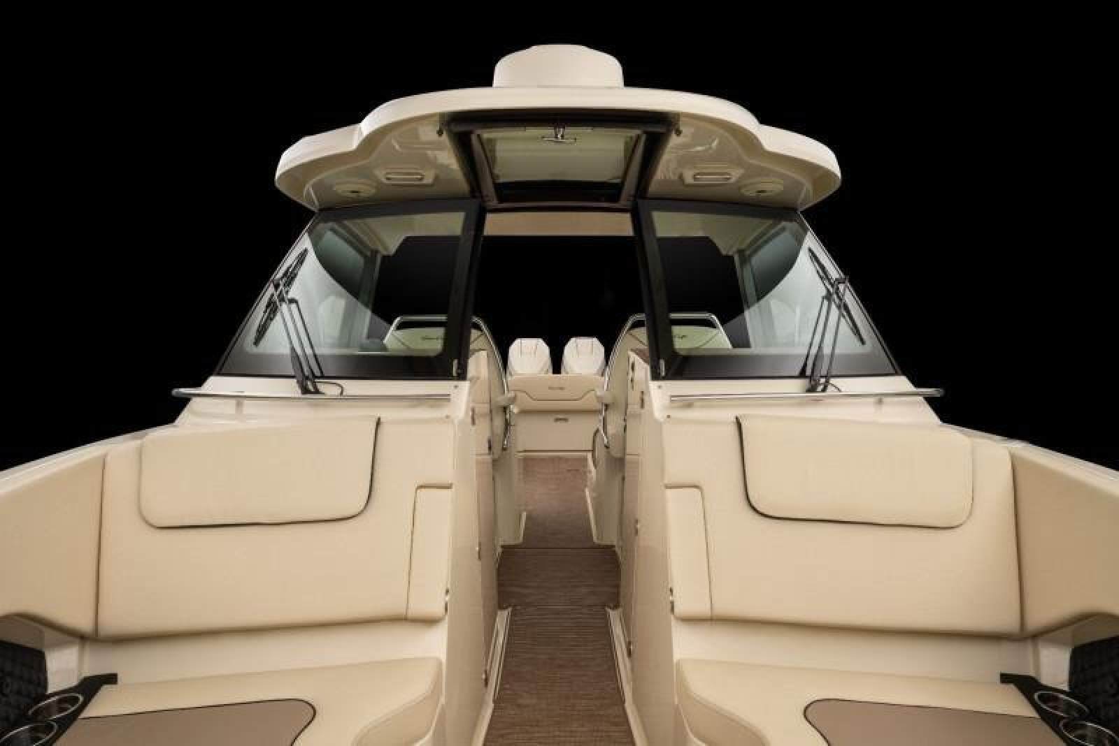 COMFORT AT THE READY - Extend your time on the water with a telescoping SureShade that offers extra sun protection at the push of a button while retaining your beautiful open-water views. Or control your climate with an optional drop curtain that encloses the cockpit to enjoy a heated or cooled space, as needed.