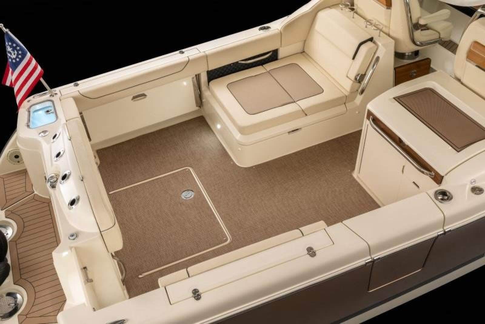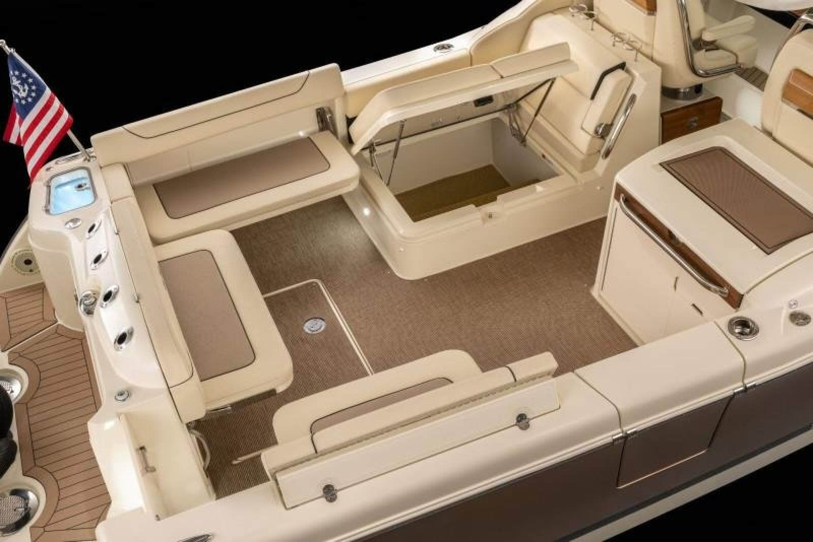 IMPRESSIVE ALL AROUND - The Calypso 32 blends sophistication and style with the latest marine technology. Classic Chris-Craft styling runs from bow to stern, with stainless steel hardware, custom appointments, and our signature flared bow and deep-v hull. With Seakeeper Ride technology, inductive phone charging, and connectivity to the MyChris-Craft App all standard, this is truly a boat to marvel.