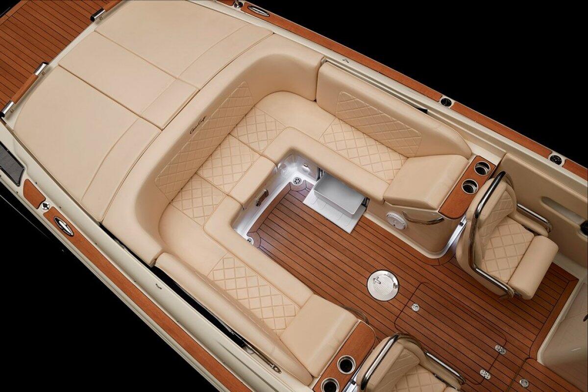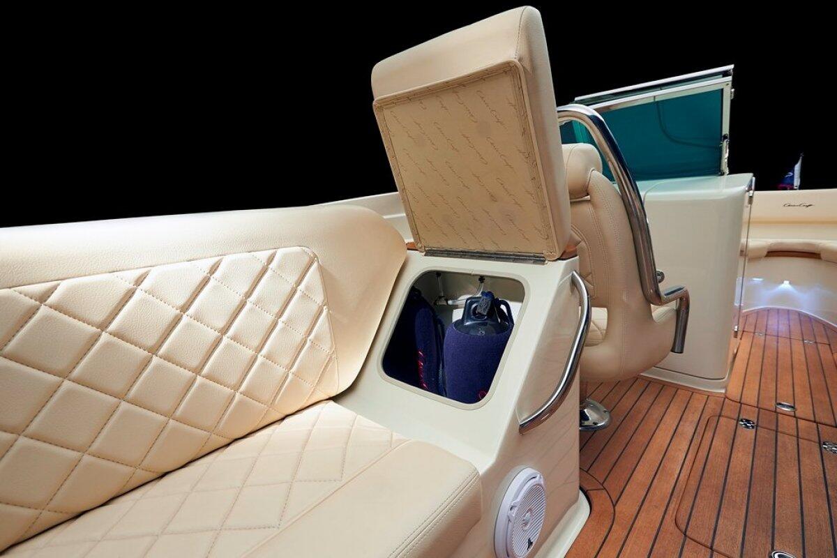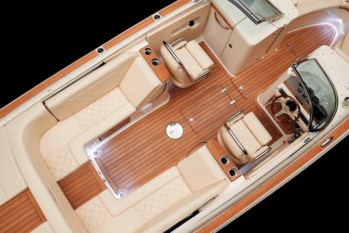 A wide captain's chair puts you in control behind gleaming gauges and a rich, mahogany steering wheel. The luxurious diamond-pattern stitching is complemented by a thick stainless steel bar. And a thigh bolster brings added height and visibility.