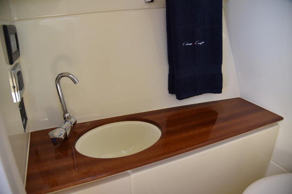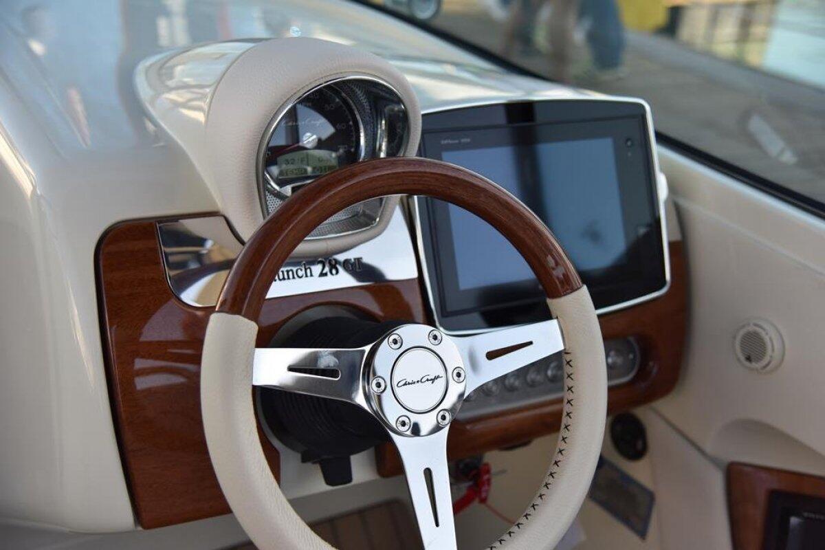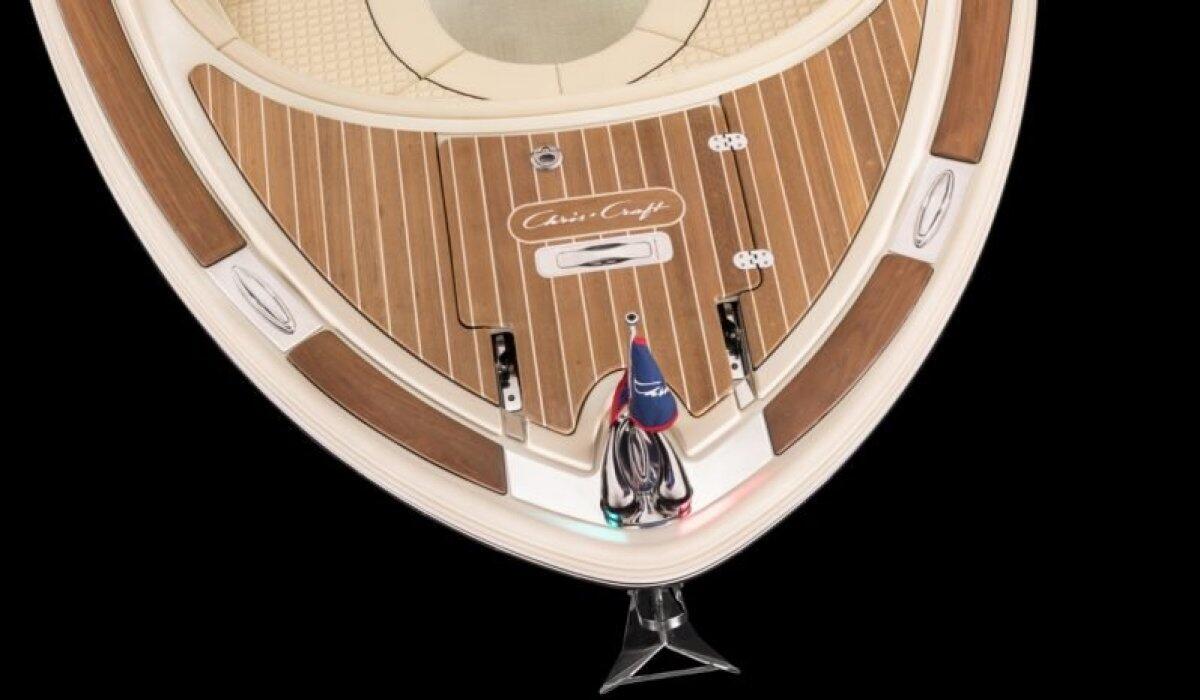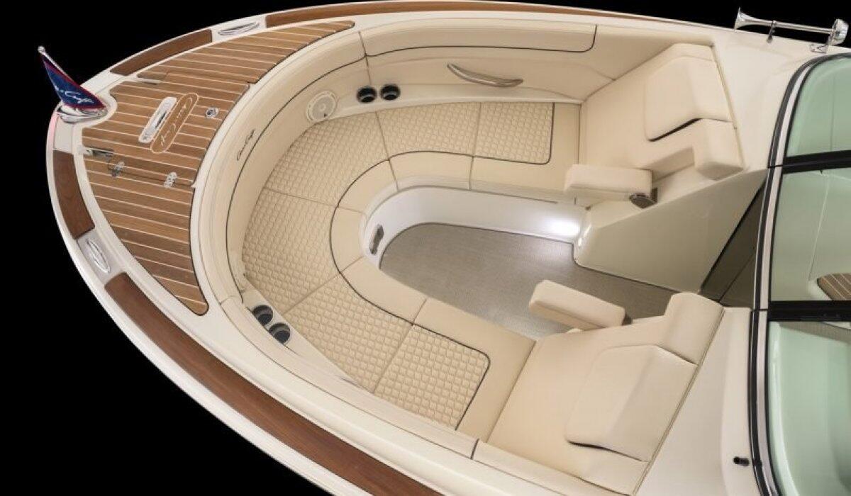 Available with the option of sterndrive or outboard, the customizability is endless. From metallic paints and cross-stitched upholstery, the Launch 28 GT will also showcase a new upholstery pattern from Chris-Craft throughout the cockpit. Varnished mahogany can be found throughout the boat displaying Chris-Craft's strong devotion to craftsmanship.
