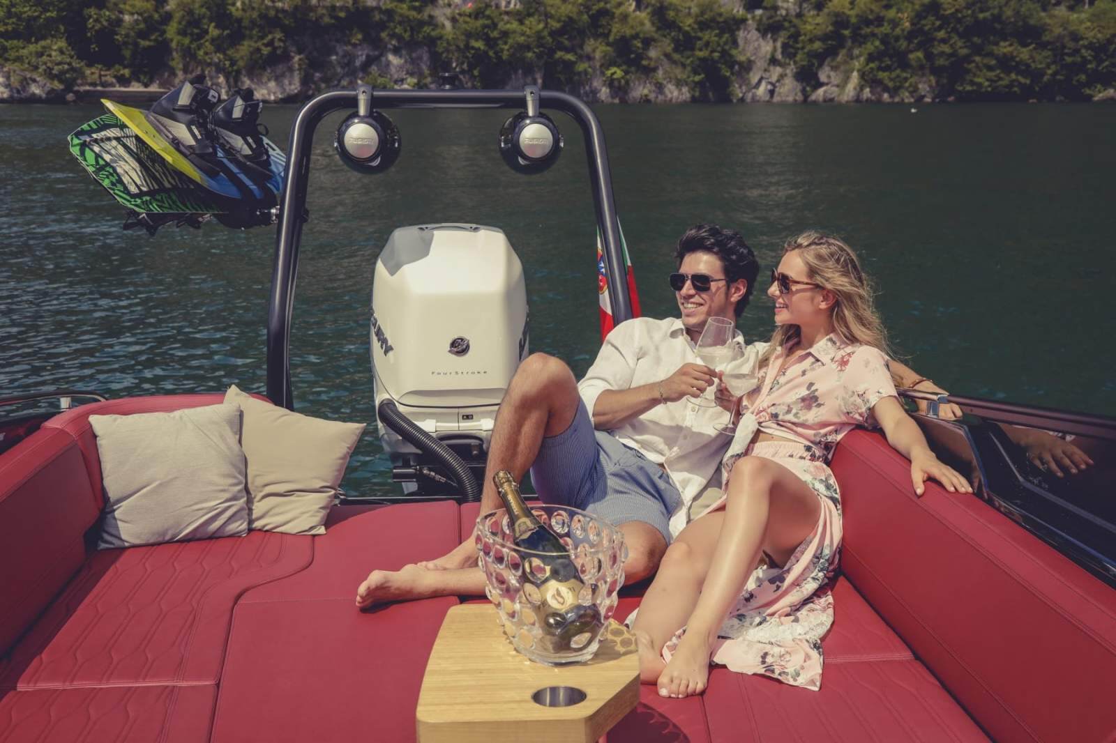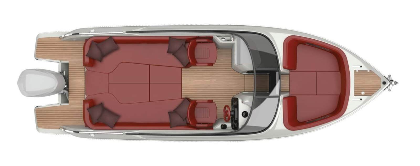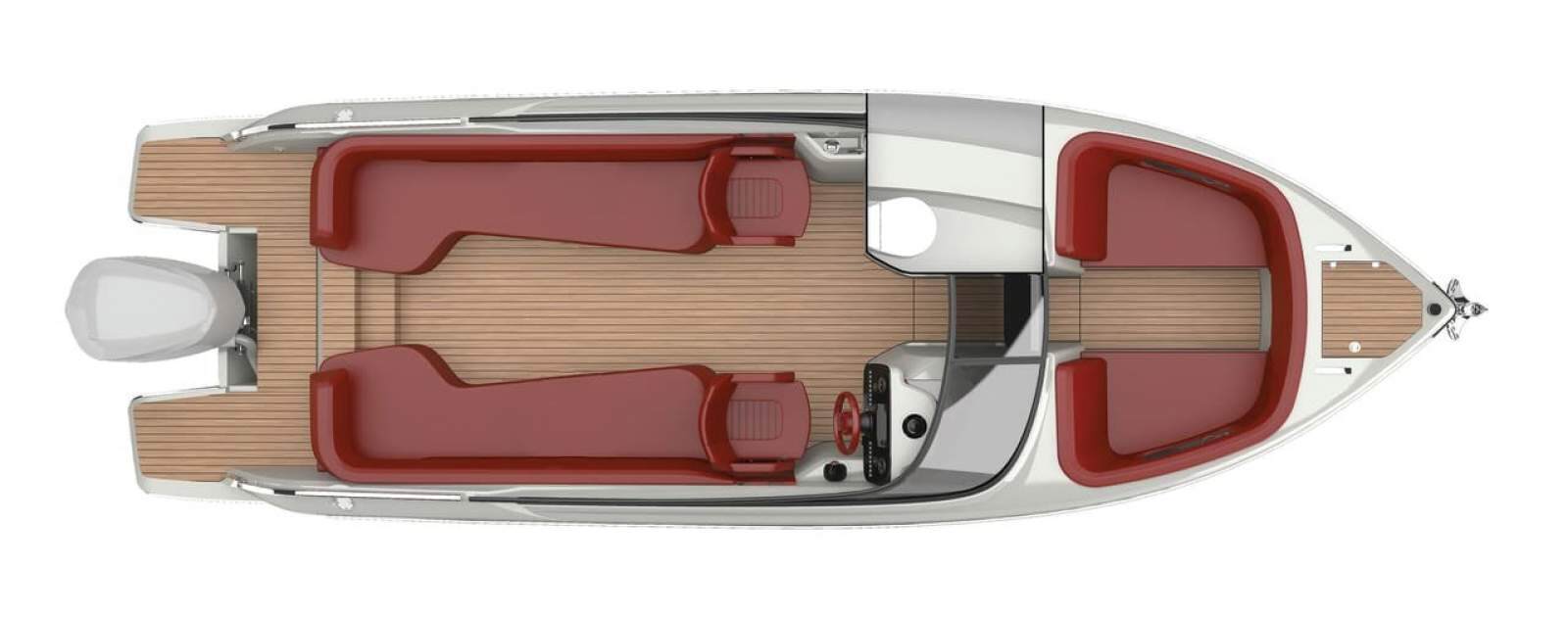 The E26 Rider is an innovative bowrider with open bow, equipped with an outboard engine. The bow stem and fluid lines of the hull convey a sensation of sporty elegance: we find ourselves in the presence of a contemporary classic, able to surprise with its versatility. Day cruiser or luxury tender: it can be both. That's why you can call it a "luxury day tender".