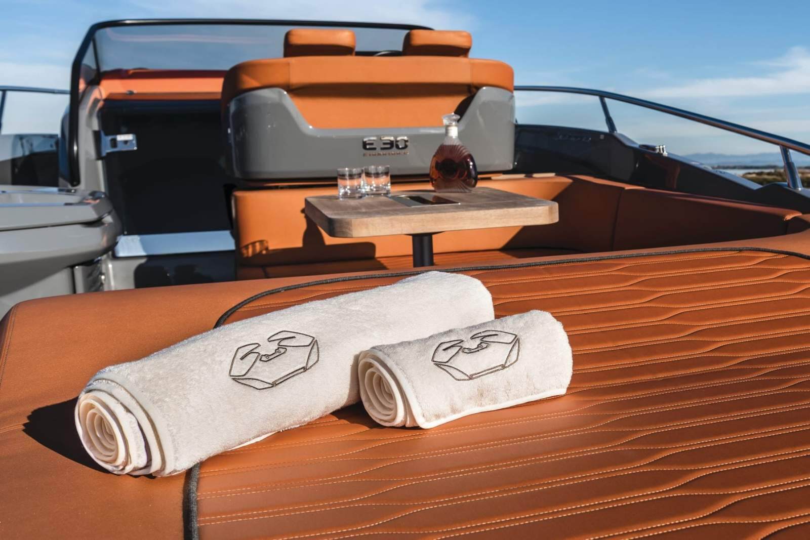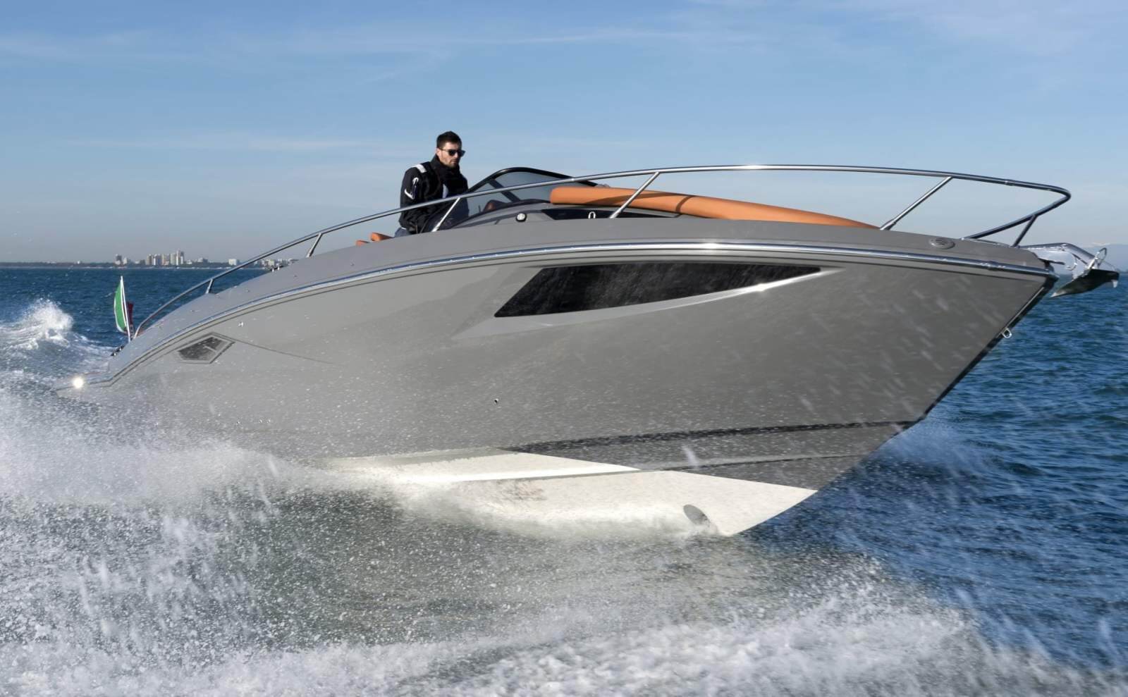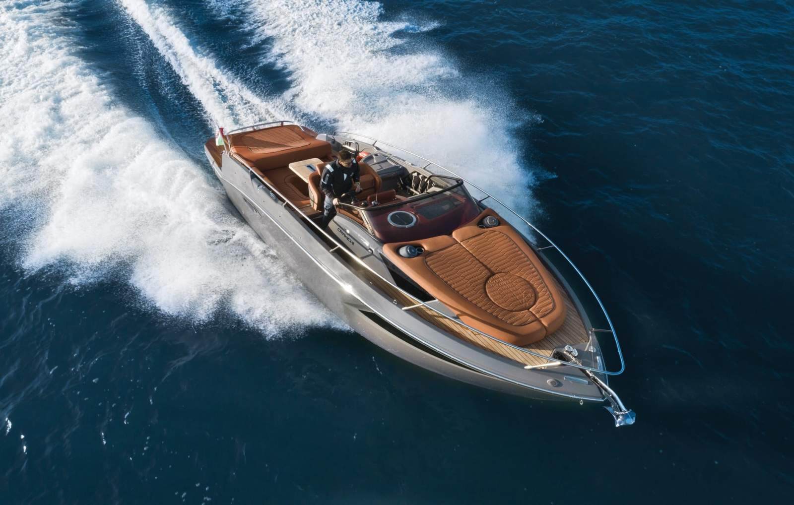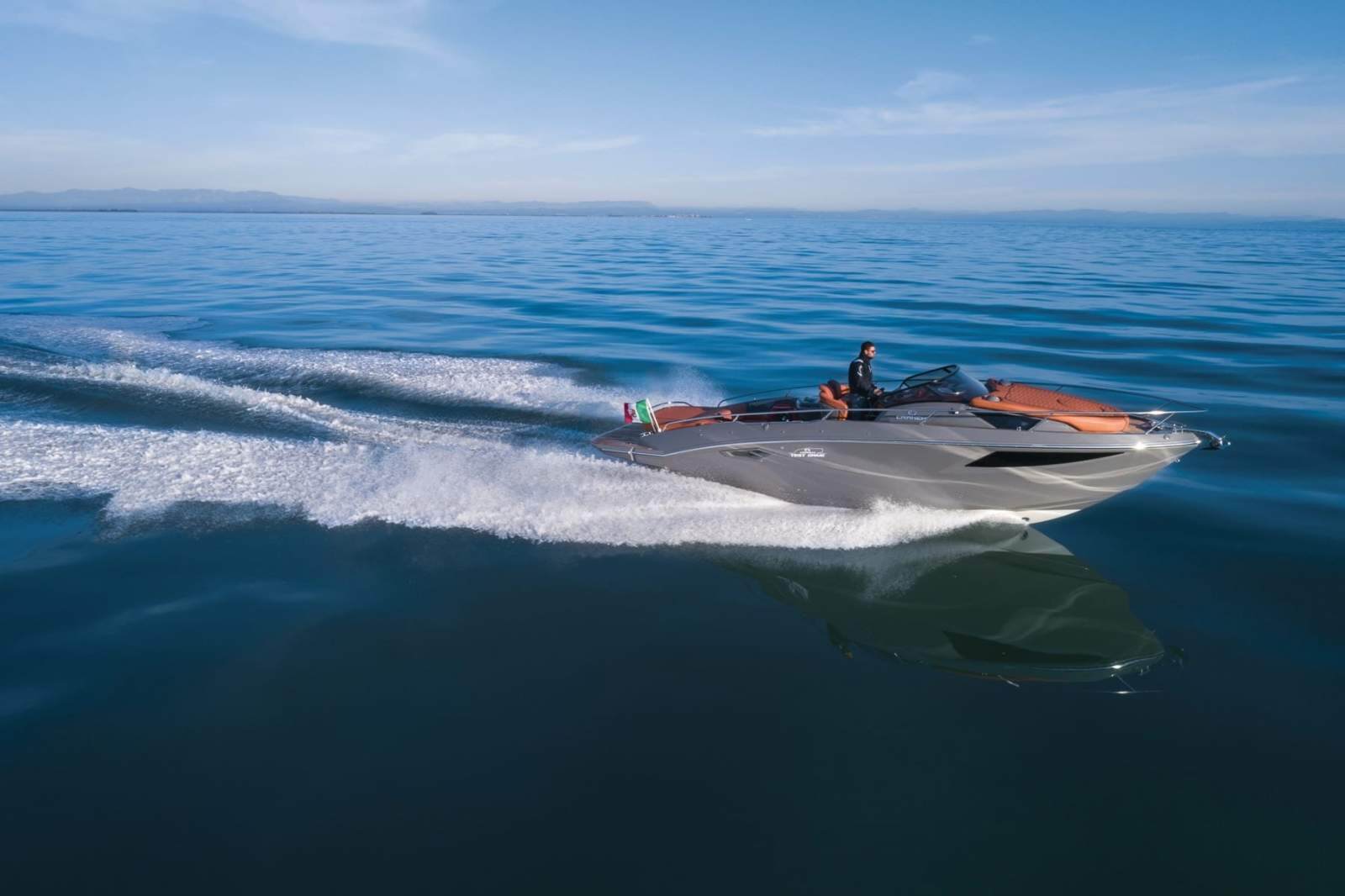 The 9.85 metre daycruiser features soft lines and refined details with a sporty, vintage style which enhance it in terms of functionality and elegance.