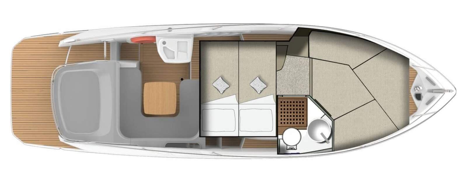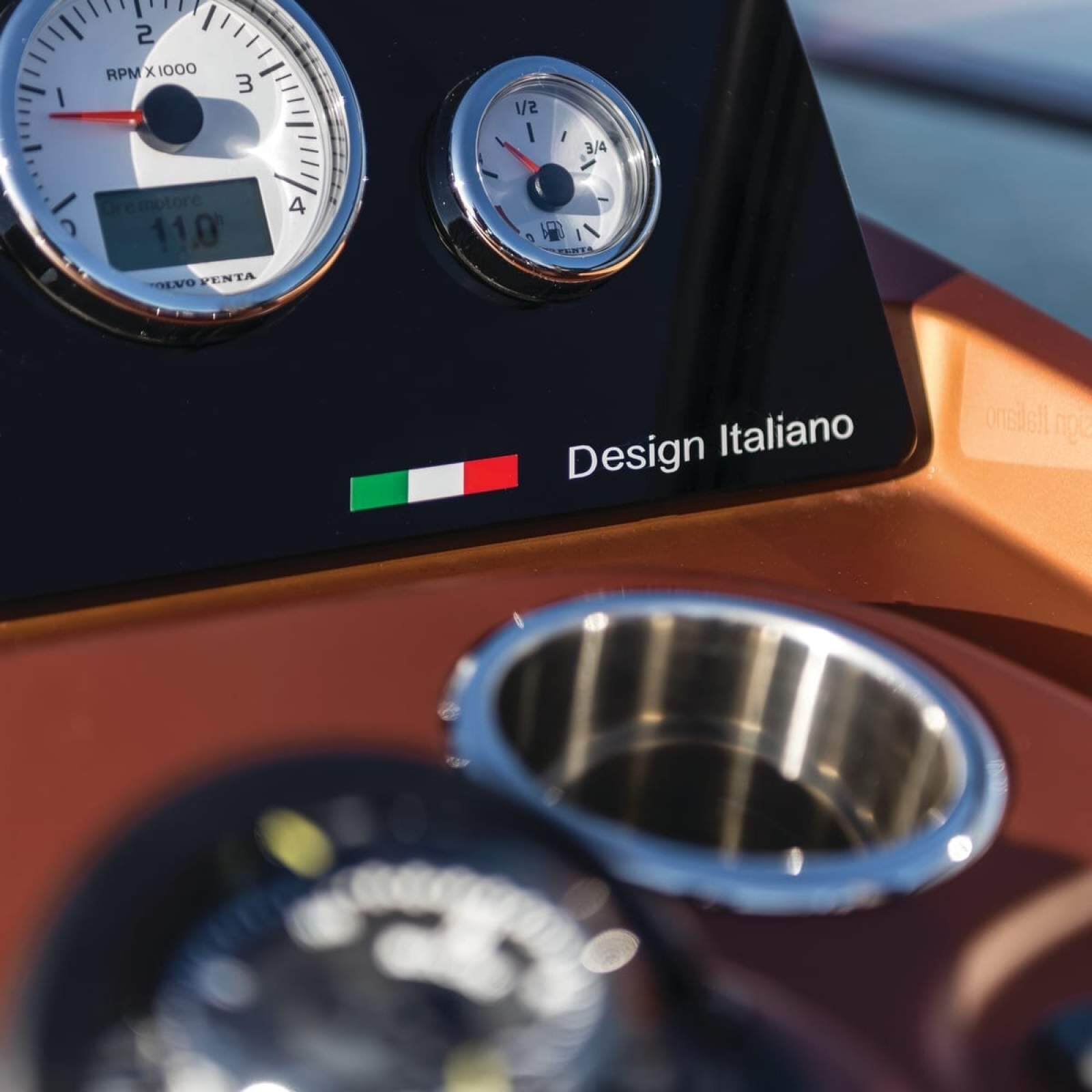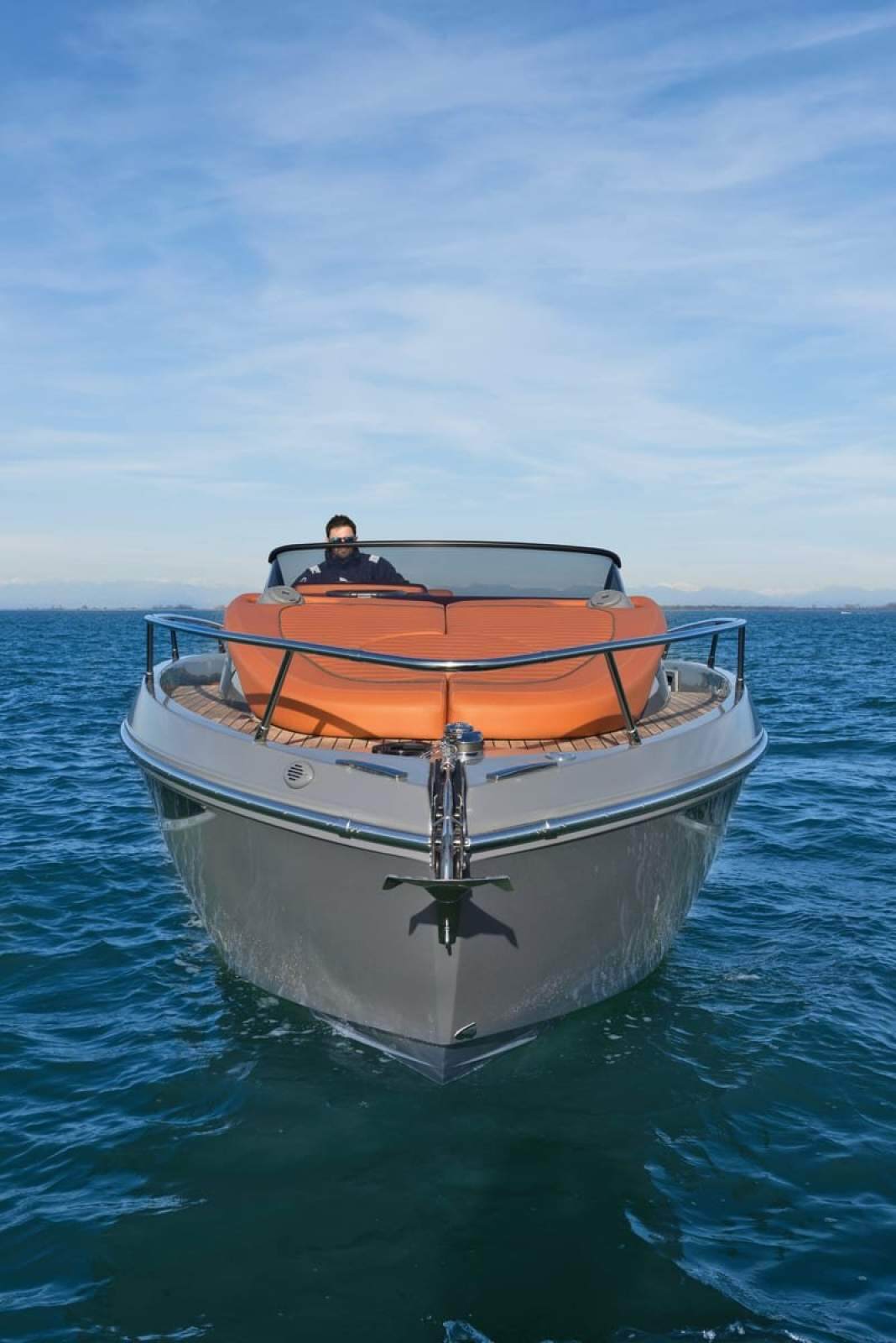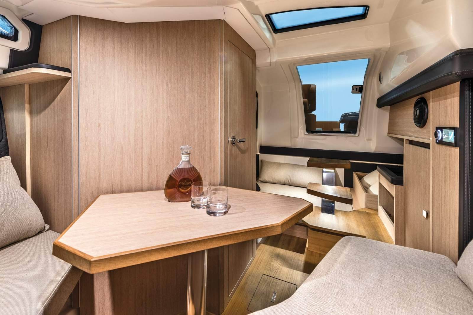 The 9.85 metre daycruiser features soft lines and refined details with a sporty, vintage style which enhance it in terms of functionality and elegance.