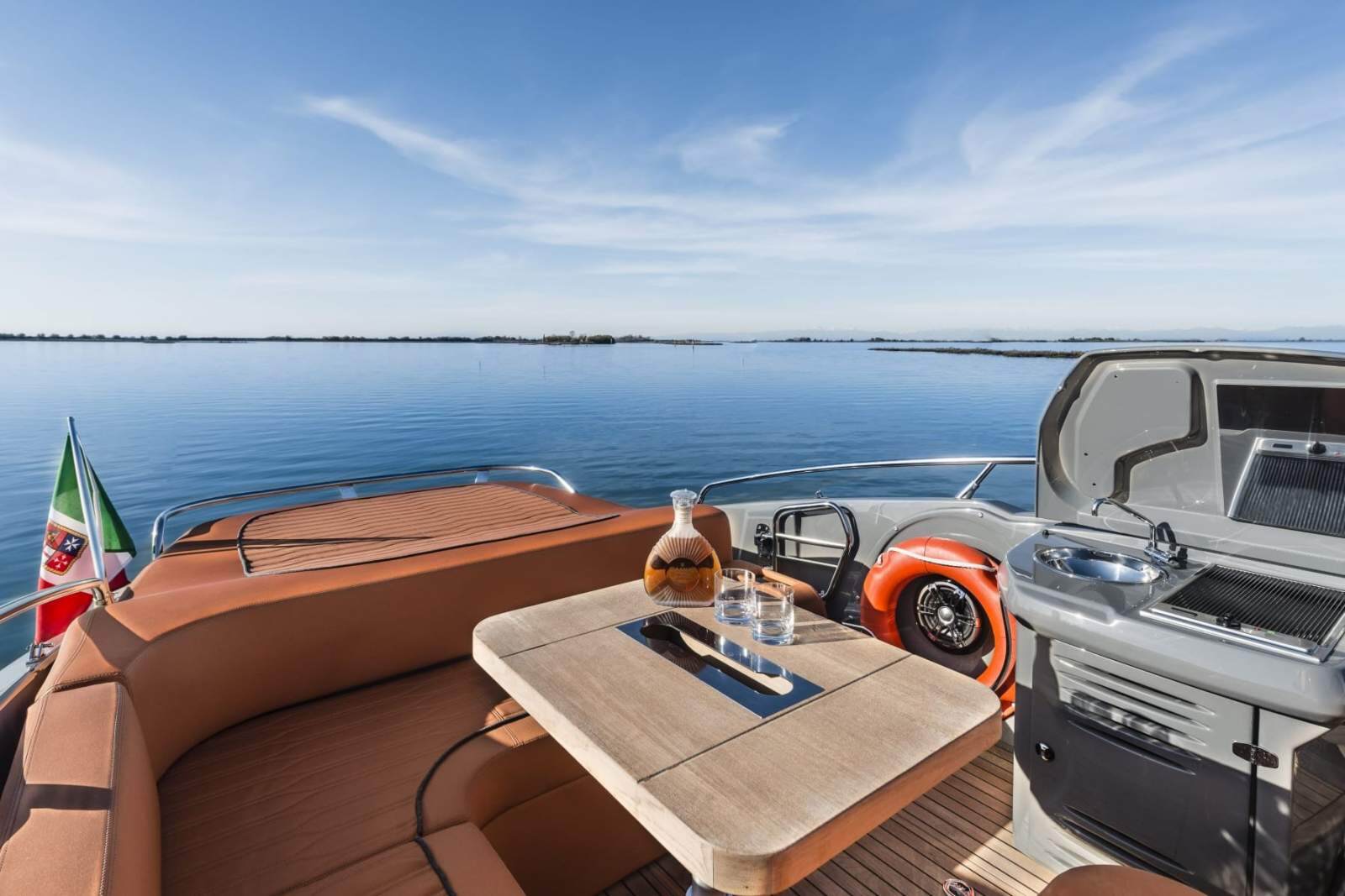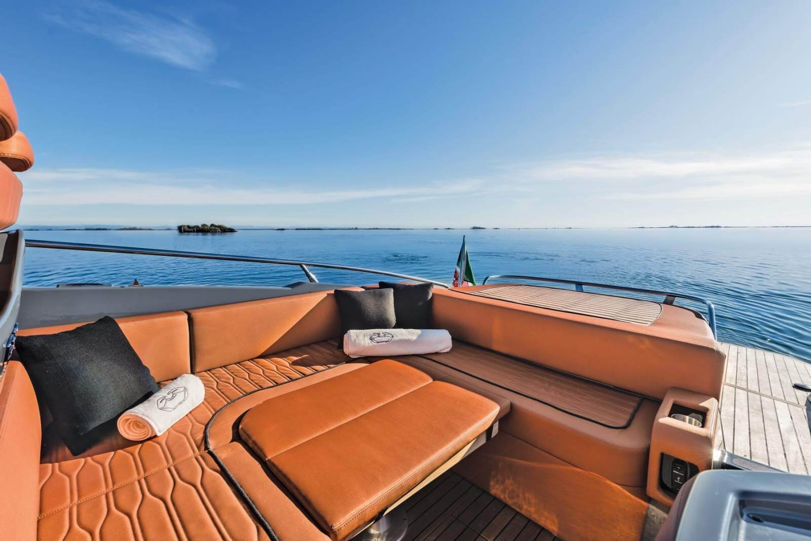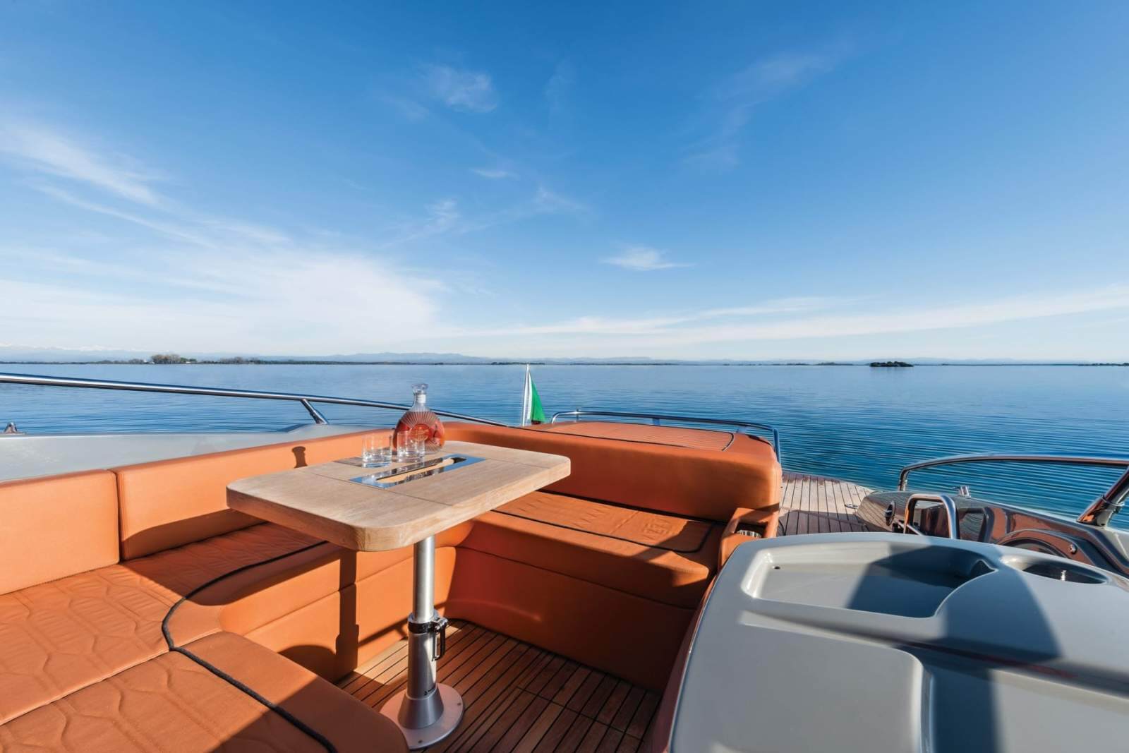 Space and light, always beyond expectations - The height of the indoor areas, the level of comfort and the extremely elegant décor choices make this yacht ideal for cruises of a day or longer. The spaces are bright and airy thanks to six light points and the plexiglass door.