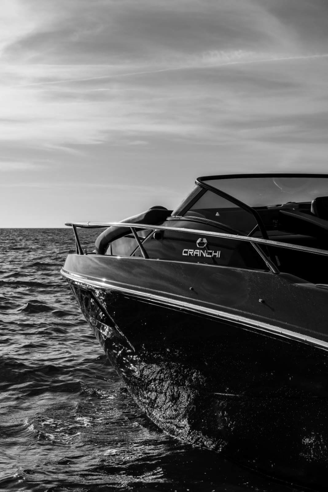 Piloting the Cranchi E30 Endurance is a real pleasure. A tried and tested hull, efficient and precise. The vessel makes the best use of the available power, reaching a top speed of over 32 knots. What stands out most of all is the pleasant driving experience. The boat is reactive, prompt, and never nervous. It holds its line very well, and has a very tight turn radius. This is the benefit of having just one engine, and well designed waterlines.
