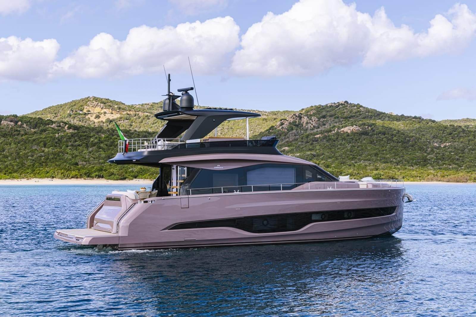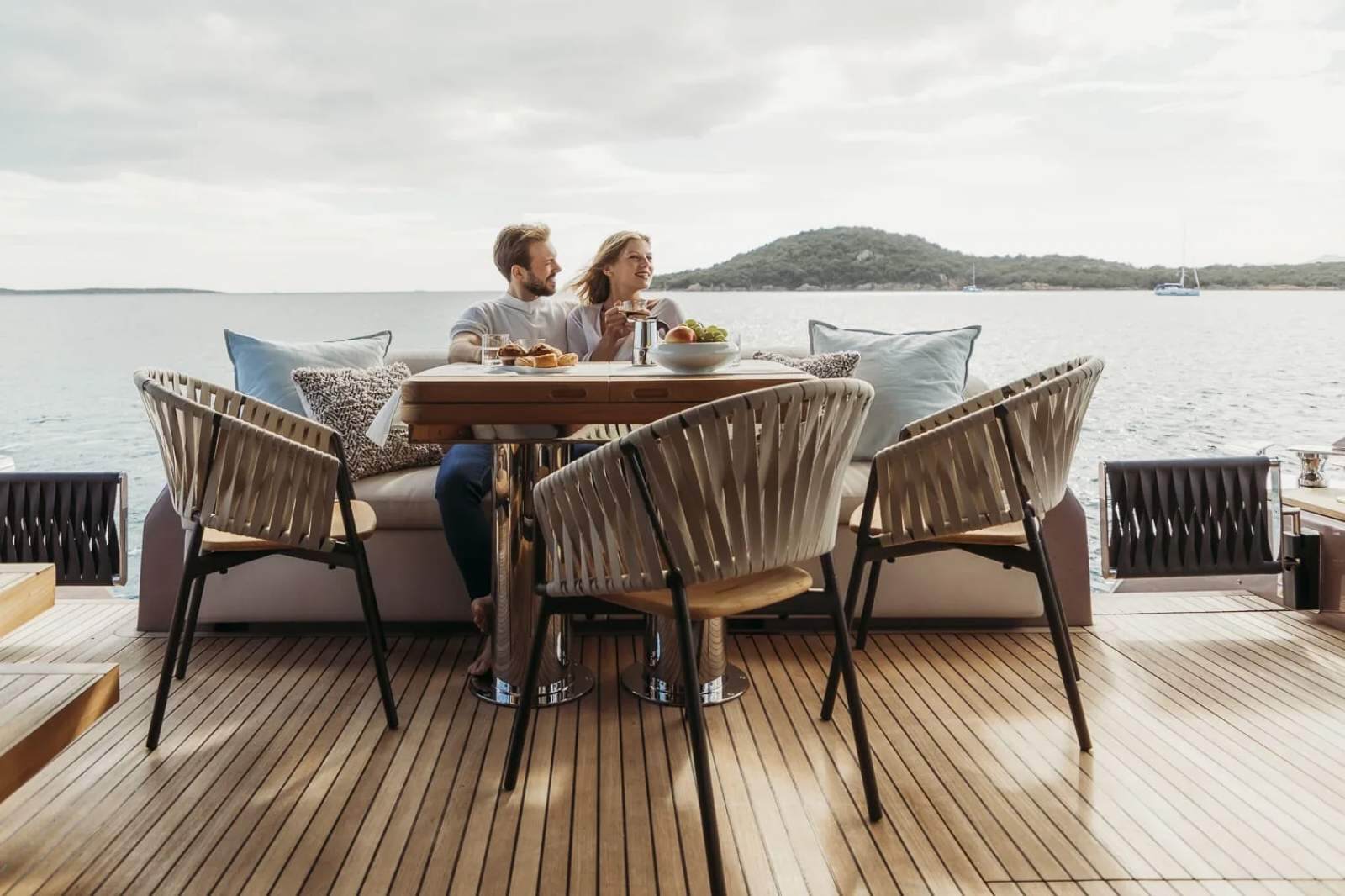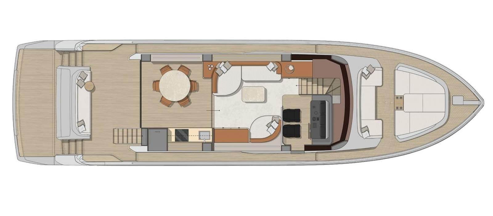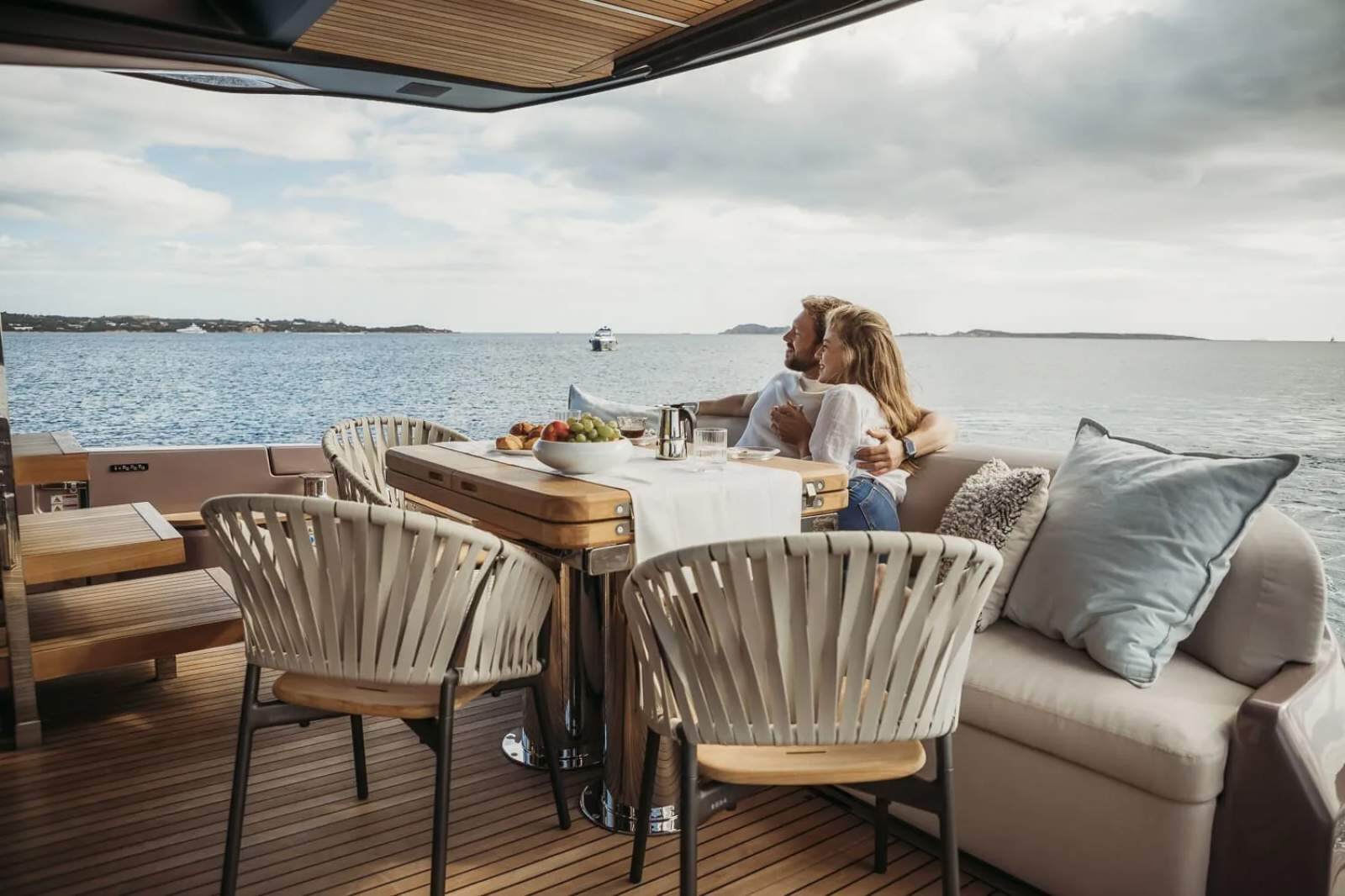 The essence of a flybridge, in a contemporary key - Clean lines, the ability to interpret materials in a contemporary manner with influences from seafaring tradition, and the adoption of stylistic choices derived from the residential environment: all this makes the Sessantadue 62 a yacht which aims to be sleek and essential without surrendering to minimalism. Its elegance is relaxed, warm, welcoming, conceived to inspire and convey a feeling of freedom.