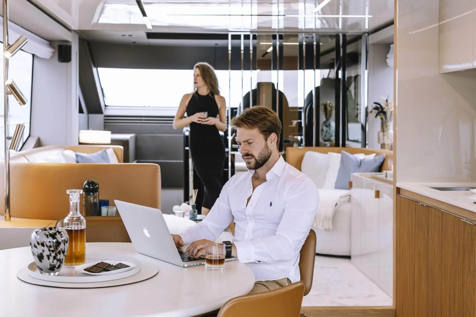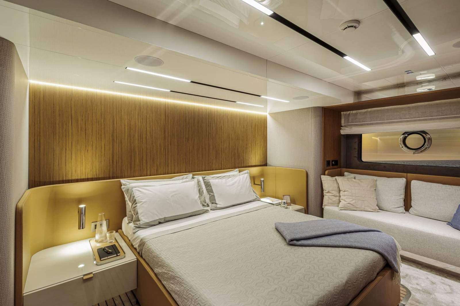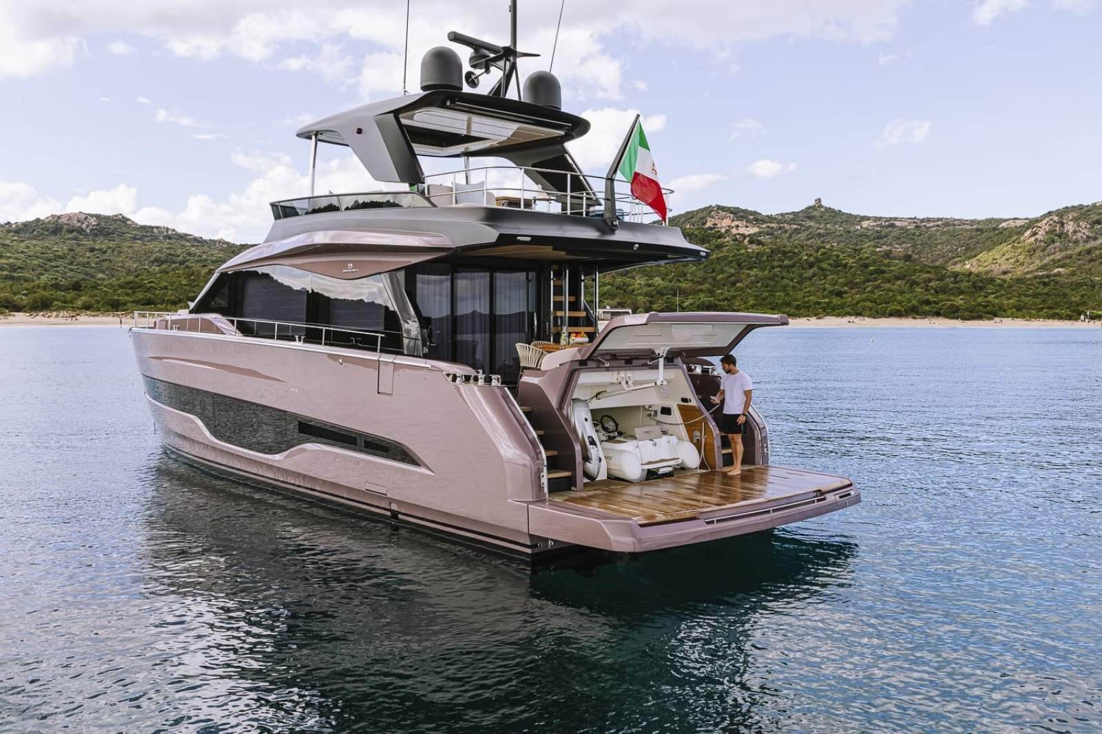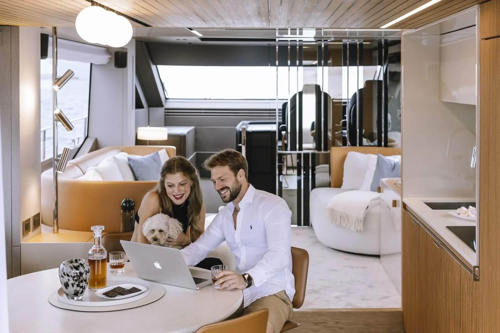The essence of a flybridge, in a contemporary key - Clean lines, the ability to interpret materials in a contemporary manner with influences from seafaring tradition, and the adoption of stylistic choices derived from the residential environment: all this makes the Sessantadue 62 a yacht which aims to be sleek and essential without surrendering to minimalism. Its elegance is relaxed, warm, welcoming, conceived to inspire and convey a feeling of freedom.