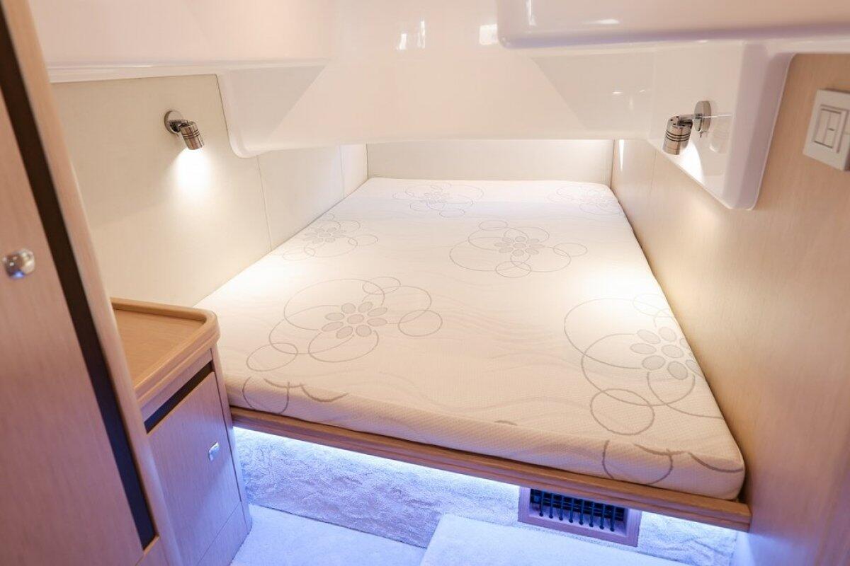 The interior layout is ideal for weekends away, extended cruises or even commercial charter. While the private double cabins are split by a spacious central lounge, the use of expansive glazing panels and highly bespoke finishes lends the entire living space a bright 'waterfront apartment' feel.