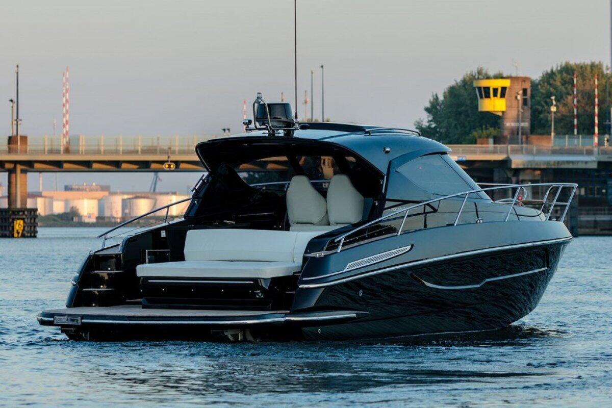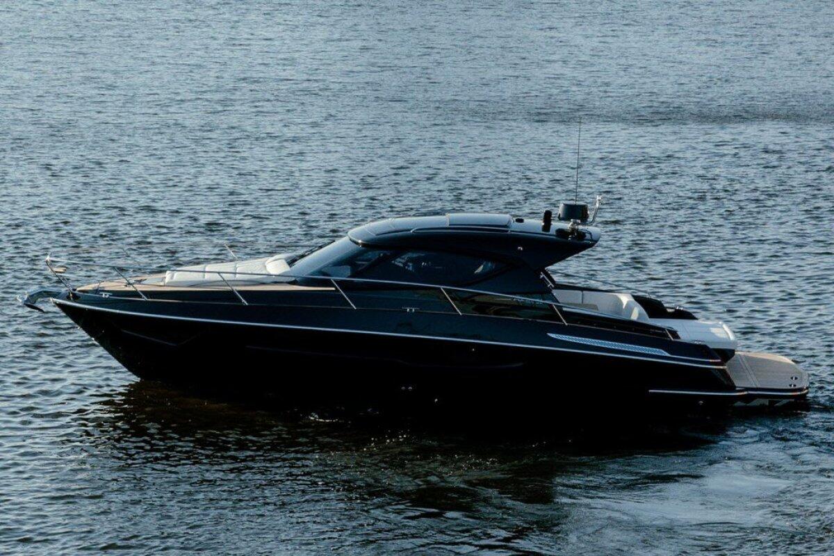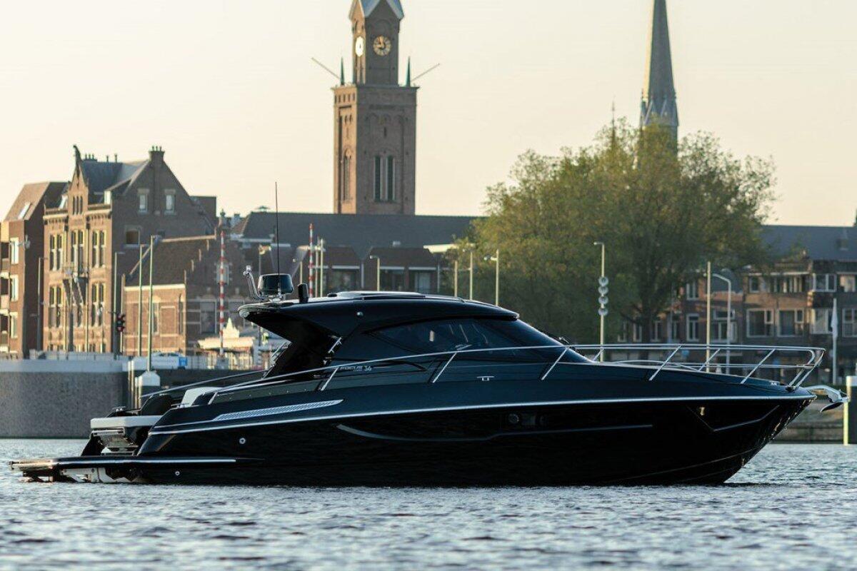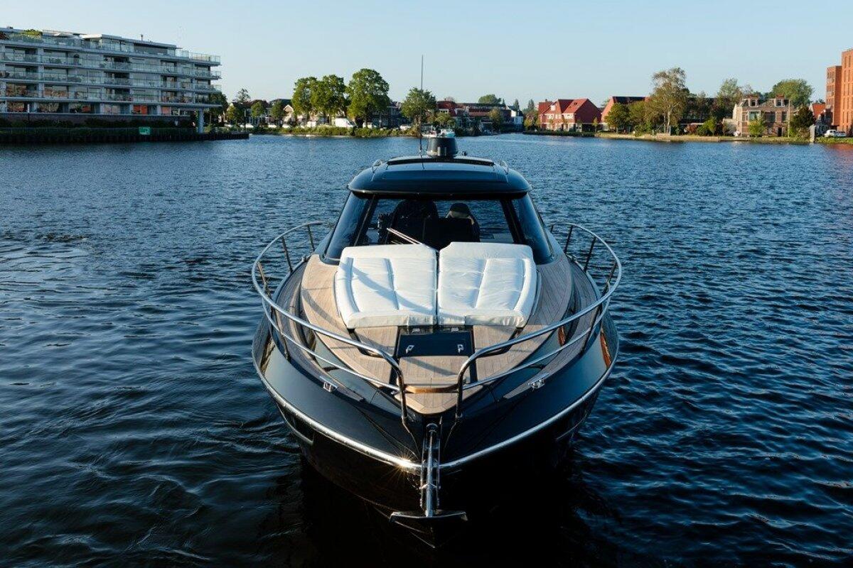 With its jet-black hull and topsides, contrasting with teak decks and custom steelwork, this custom edition of the FOCUS POWER 36 GTX is unquestionably a beautiful boat and the fit-out is also first-class.