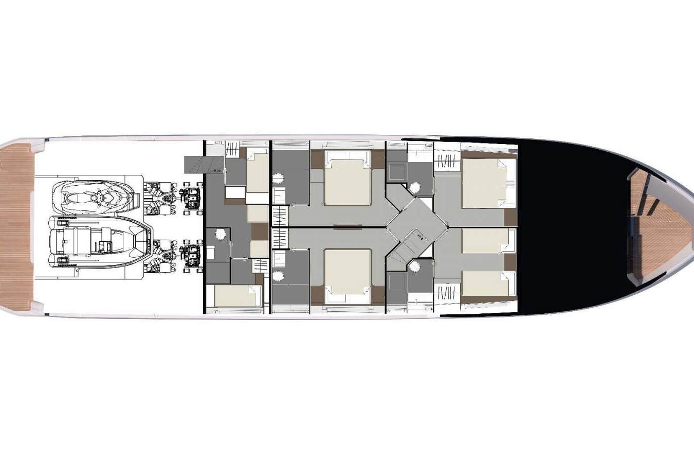 The Pearl 82 offers features entirely new to her size class. An all-new 25-meter raised pilothouse yacht, featuring a main deck master suite with a total of five en-suite staterooms in addition to a garage large enough to accommodate a tender, jet ski and water toys.