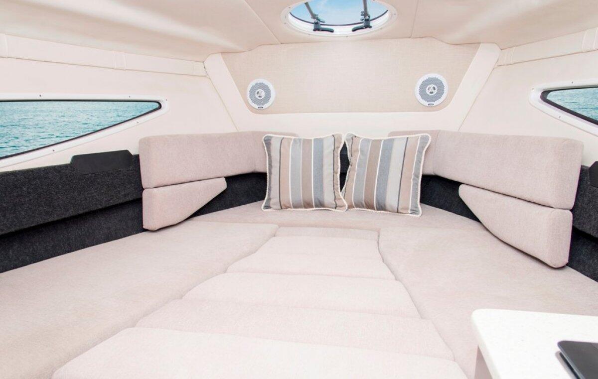 Featuring a comfortable double berth, the mid-cabin is an efficient and spacious use of space below deck.