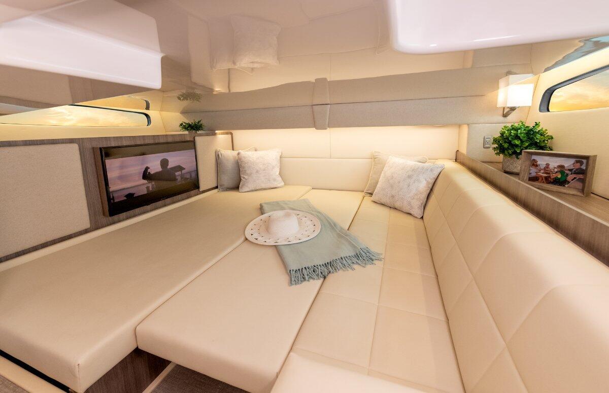 The 36 XO is extraordinary in every sense of the word. From the multi-position bow seating, to the immense space in the aft thanks to the two outboard engines, you will have plenty of room for you and your guests for a weekend away on the water. Venture down into the cabin, which boasts a California Queen and a spacious settee, the 36 XO will give you everything you need and more.