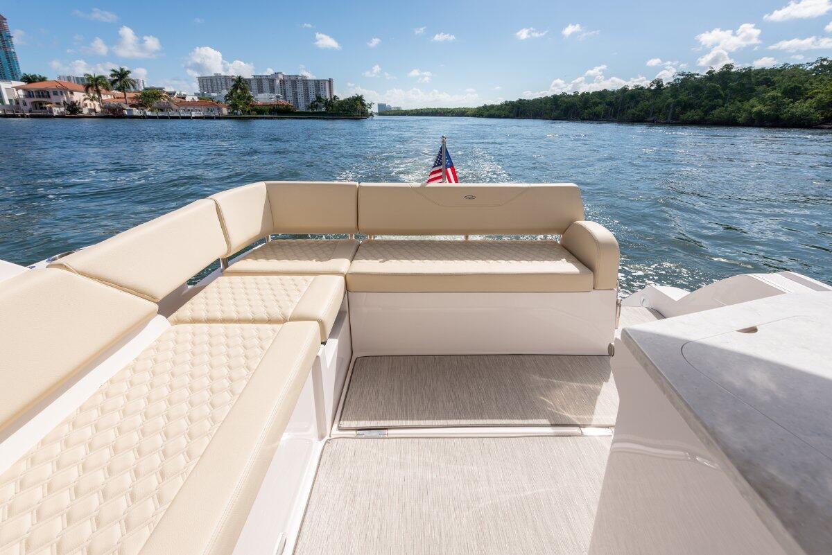 The Regal 38 Grande Coupe is unparalleled in its luxurious style, size, and upscale amenities. With endless entertainment and relaxation, whether in the sun or the salon the 38 Grand Coupe sets a new standard.