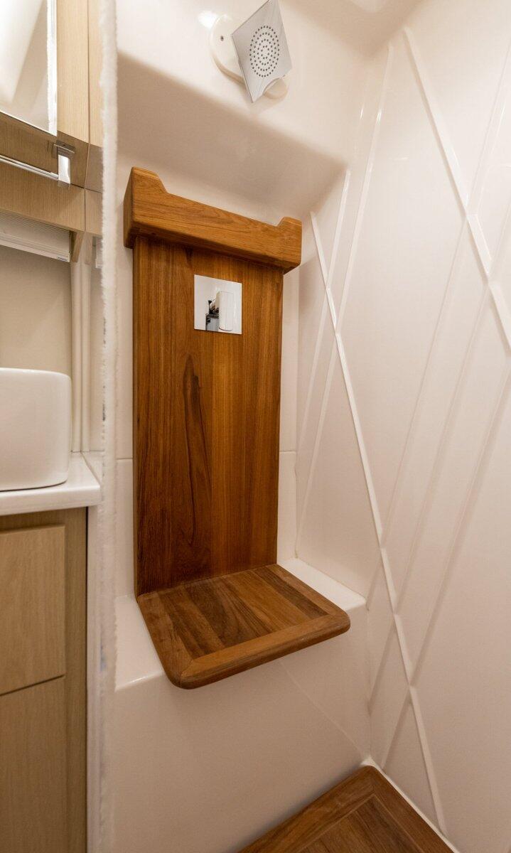 Customise your 42 Fly for your needs. Choose either a refreshment centre or a second head in the cabin.