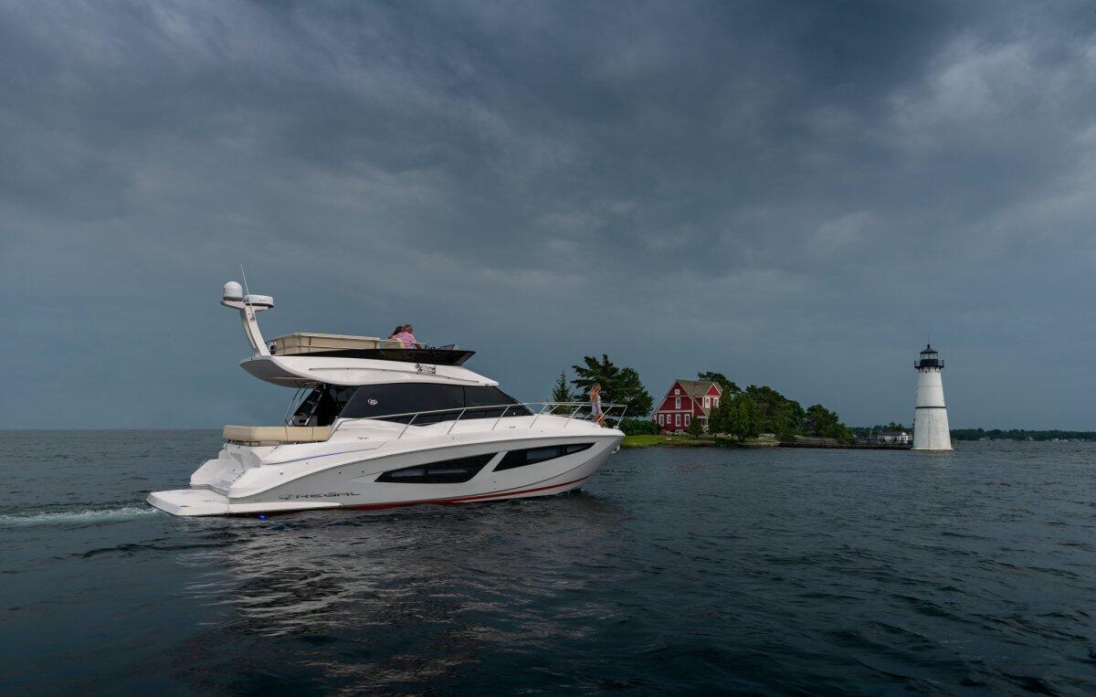 Boasting a spacious flybridge, luxurious open air atrium and the most innovative features in more than 50 years of boating excellence, the 42 Fly is truly one-of-a-kind. Whether you want to explore uncharted waters, elevate your view of the sunset or take a memorable weekend trip with some loved ones, the 42 Fly can do it all in style.