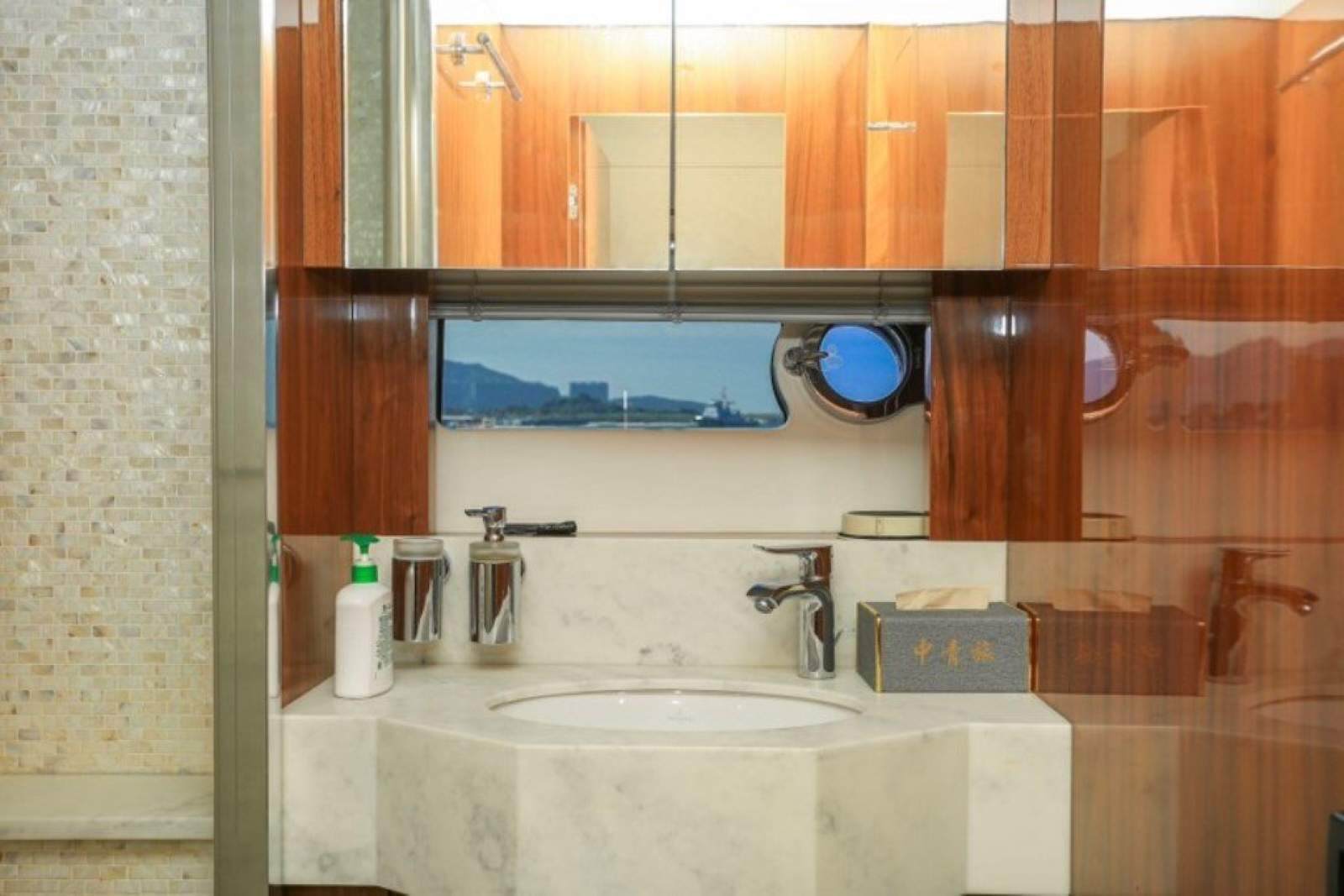 The spacious interior has 4 Cabins, 4 heads, with dedicated crew quarters equipped with washer dryer combo making extended voyages comfortable and convenient. Saloon is well laid out for entertaining with a full-size dining table to accommodate 8 guests. The teak laid Flybridge has a well-equipped wet bar with bar fridge and ice maker and GRP hardtop with huge retracting sunroof.