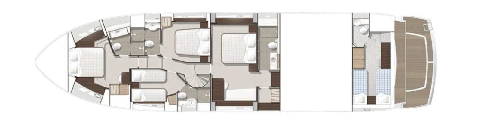 Powered by Twin MAN V12 1550hp Diesel Engines with only 700 hours, she offers a top speed of 34 knots and a cruising speed of 25 knots, ideal for fast and smooth passages. Equipped with a Dual helm, Raymarine Navigation, Fin Stabilisers, Hydraulic Bow and Stern thrusters with integrated Yacht Joystick control, Hydraulic anchor winch, Cummins Onan generators including Class II CCS certification, she meets rigorous offshore standards.