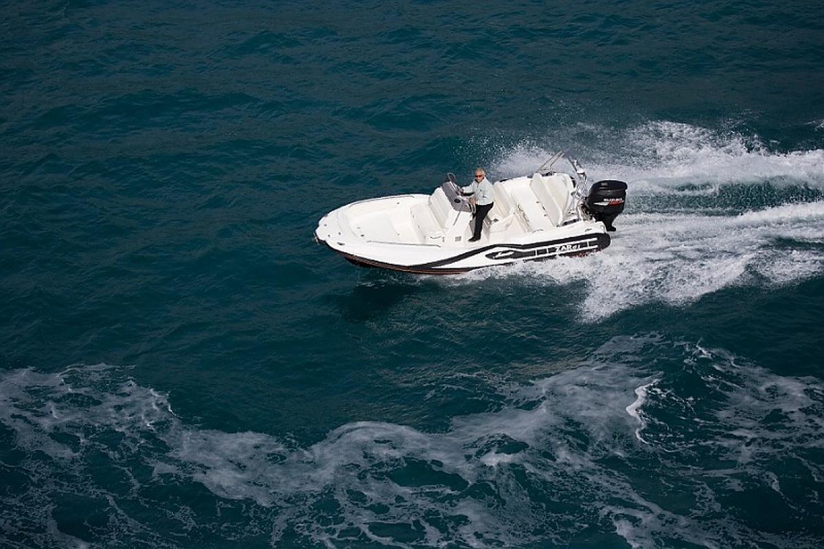 And most of all is there a hull of a seven meters R.I.B.: long and deep for a very soft and dry impact on the waves, fast and safe also in the worst driving conditions, nimble and manegeable in the port manoeuvres.
